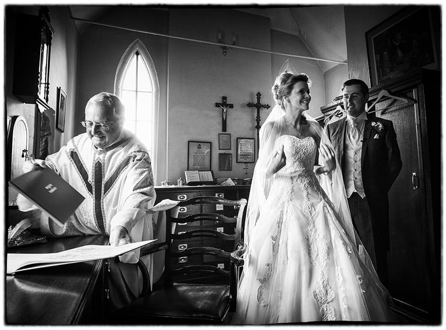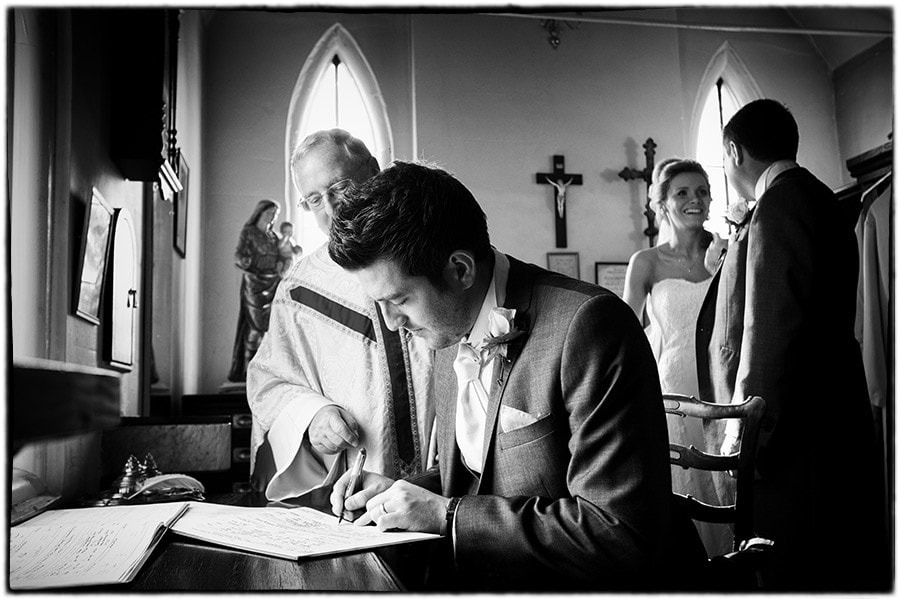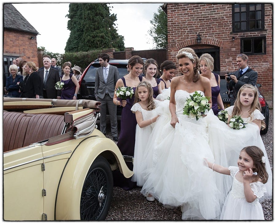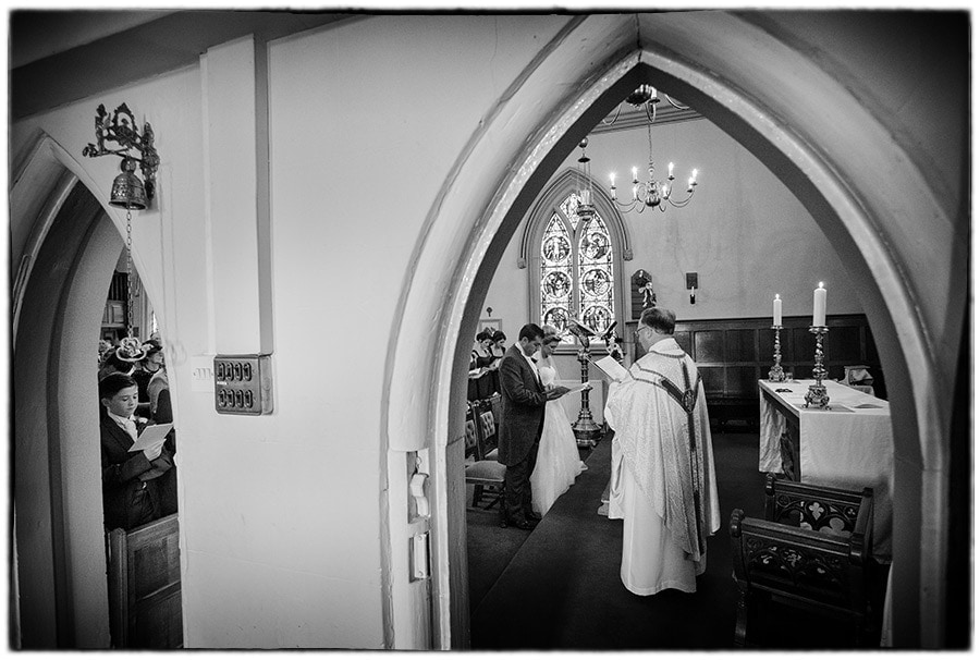 My wedding photography coverage started this week at the church with the arrival of Alastair in brilliant sunshine. Guests soon started to arrive and take their places in the church before the arrival of Sophie in a beautiful 1937 Alvis Speed 25 DHC which was originally owned by Casablanca actor Alberto Morin.  The wedding ceremony made some stunning photographs and I was able to make use of a handy doorway which allowed me to take photographs from the front without being intrusive.