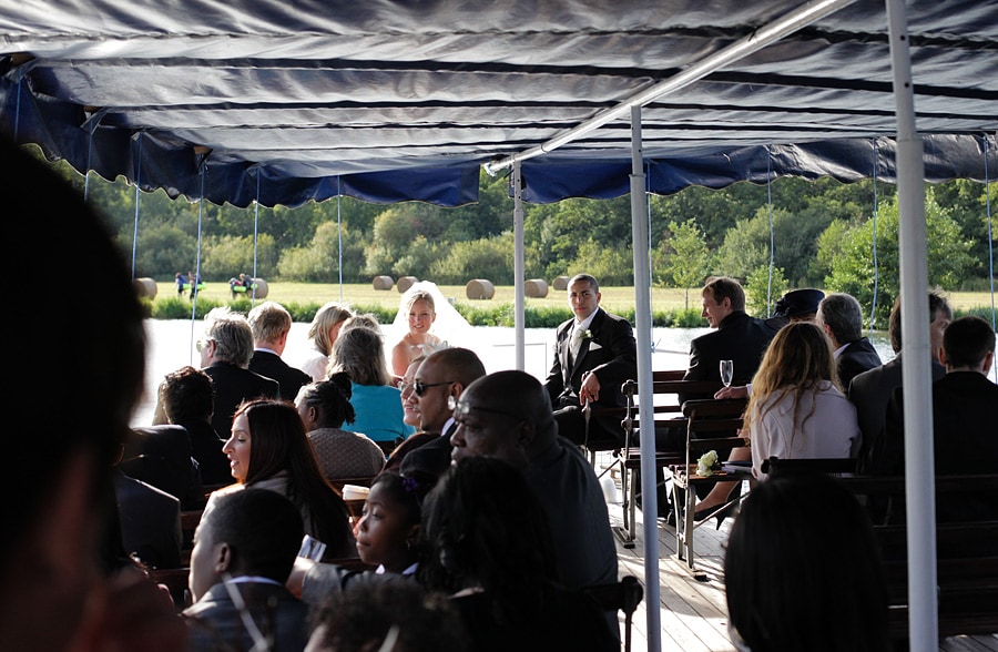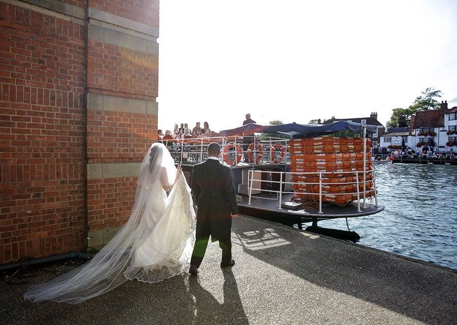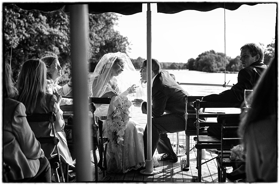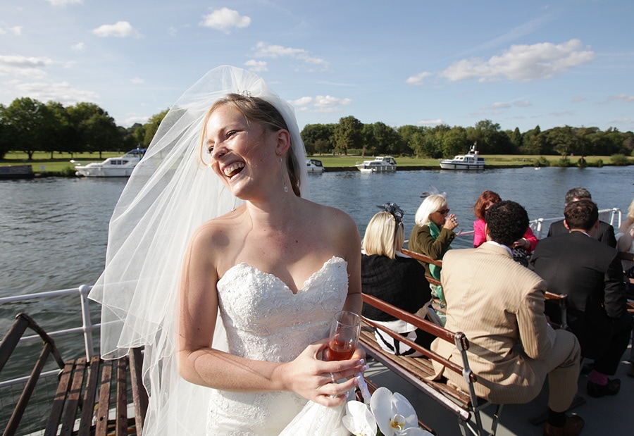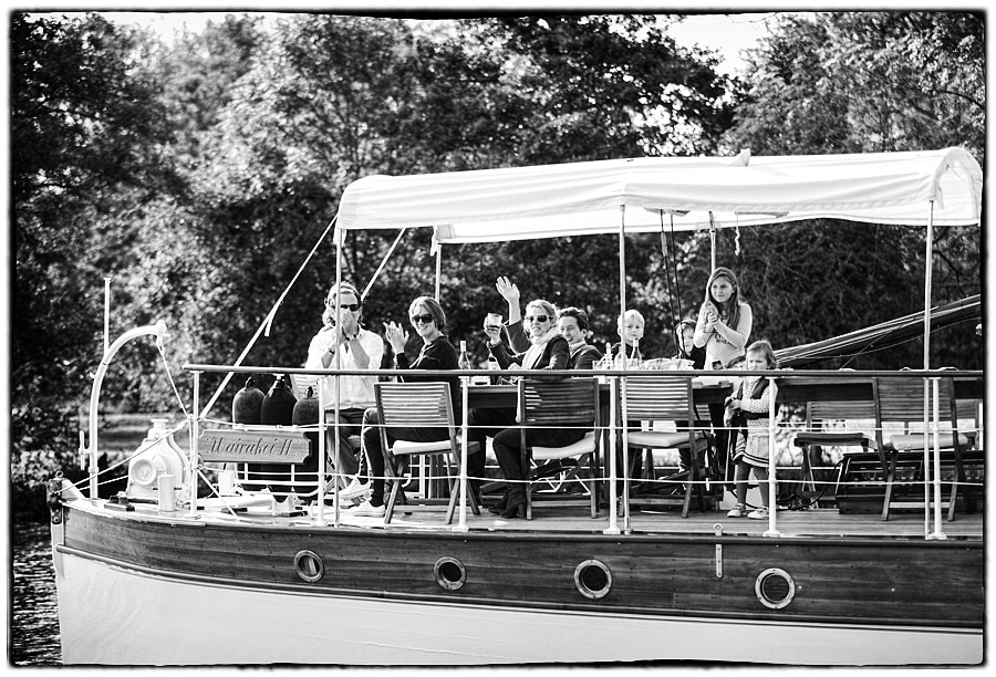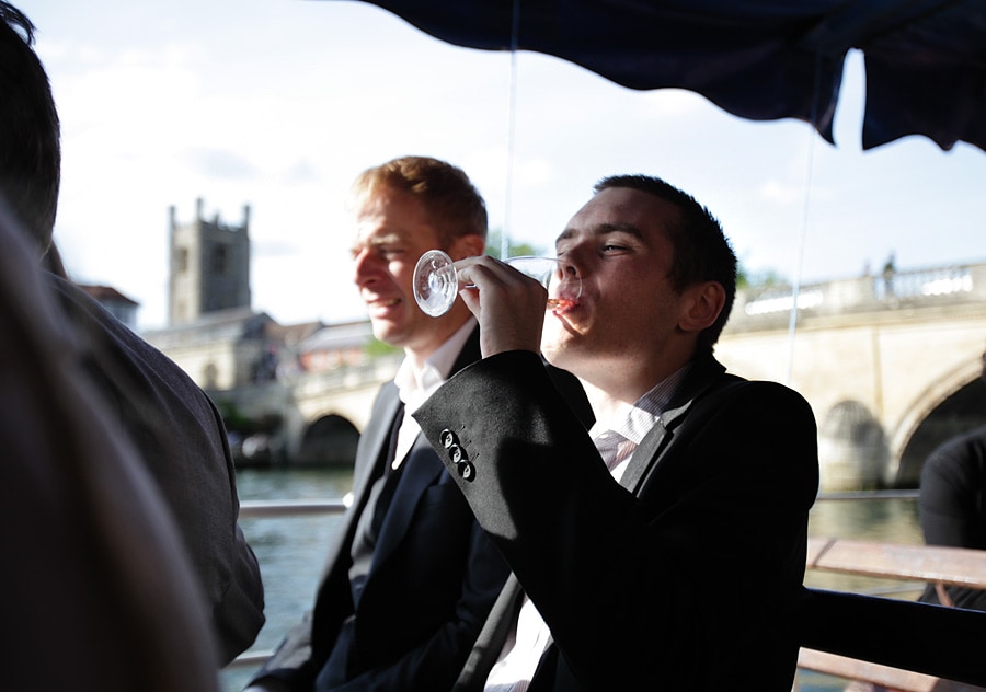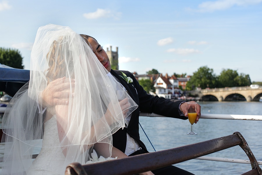 My coverage started at St Mary’s church where I caught up with the groom Jason before the ceremony. After the wedding ceremony guests made their way across Henley bridge to board a boat for the short trip up to Temple Island, last time I photographed a wedding here the weather was very wet but this time we were blessed with sunshine and blue skies.