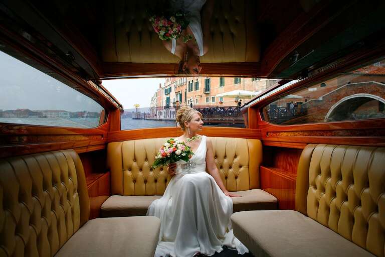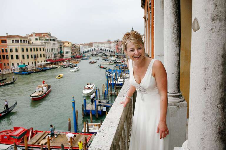 The following morning I set off to Sharon’s hotel to photograph her hair and make up before travelling with her in a water taxi (Riva boat) to the town hall for the wedding ceremony. The ceremony felt a little strange with no guests and with myself signing the register as witness. Once married Sharon and James went out onto the balcony overlooking the Grand Canal and just about everyone on the canal cheered and clapped. Later we took a trip around Venice in the water taxi, unfortunately the weather turned wet.